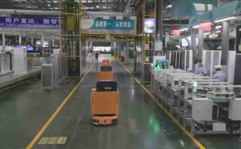 为车载冰箱物流配送打造的智能解决方案,,包含产中物流通过潜伏举升AMR搬运至线边,,产后成品物流智能仓储,,,,流程包含产中物流智能齐套入库,,线边安灯叫料AMR智能配送至线边,,成品入库、、、、出库,,,,通过无人堆高车机器人,,智能仓储管理替代人工作业管理,,,,实现更高存储、、、更高效率、、、更具柔性化的解决方案。。。。